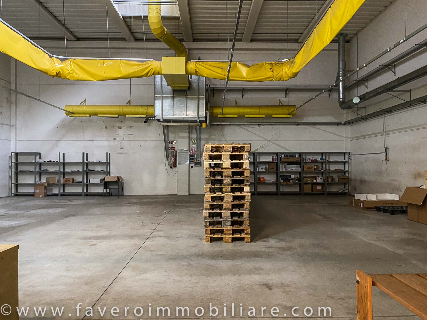FOSSO' z.i. Affittasi porzione di capannone artigianale-industriale con altezza interna 6,4 metri, dotato di ufficio, servizi, locale tecnico e soppalco. Piazzale comune con possibilità di parcheggio; portone per l'accesso veicoli per il carico-scarico.
