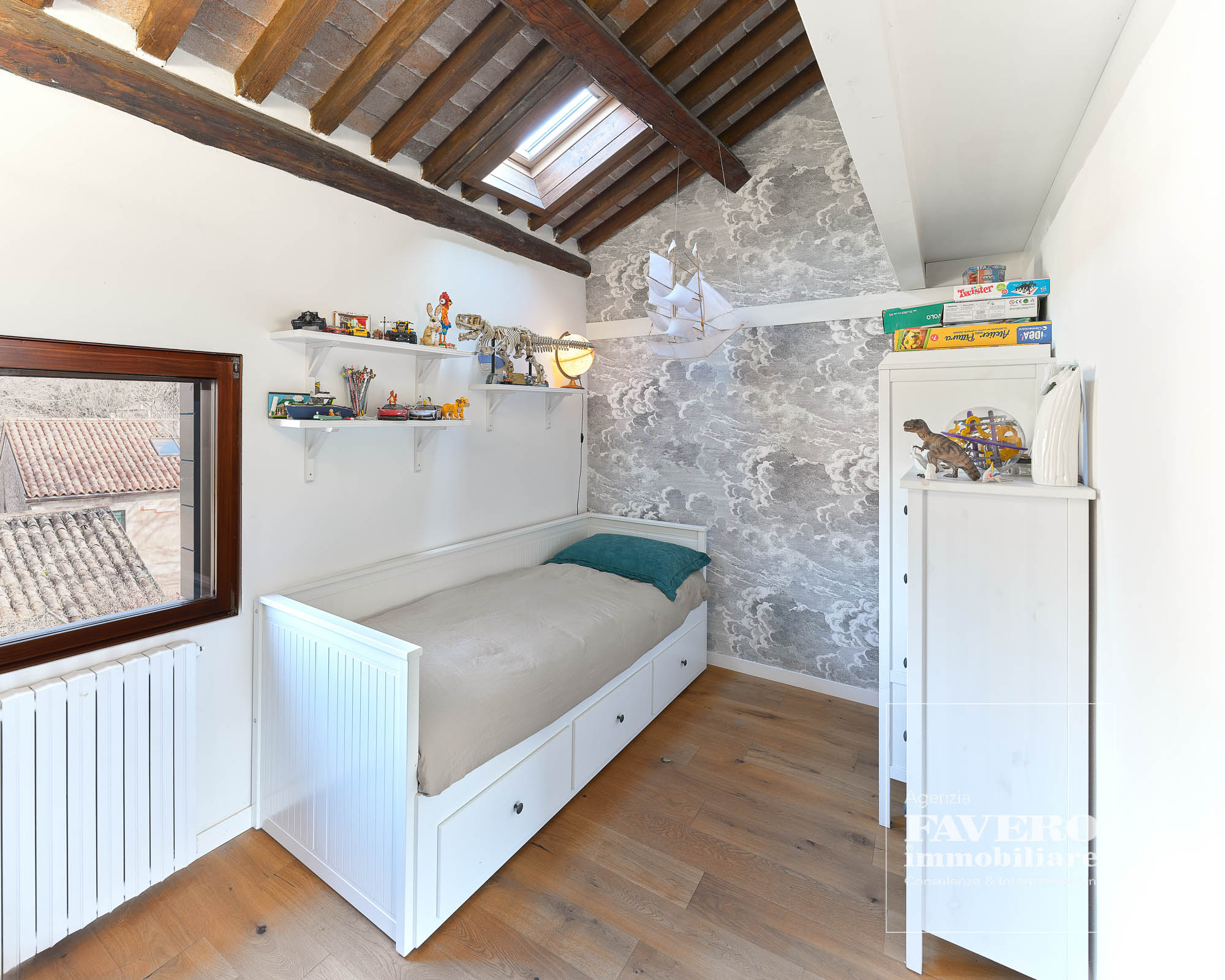 Al secondo e ultimo piano del fabbricato, una ampia e molto alta mansarda, sono state ricavate due ampie unità abitative, una delle quali è quella che proponiamo per la vendita.